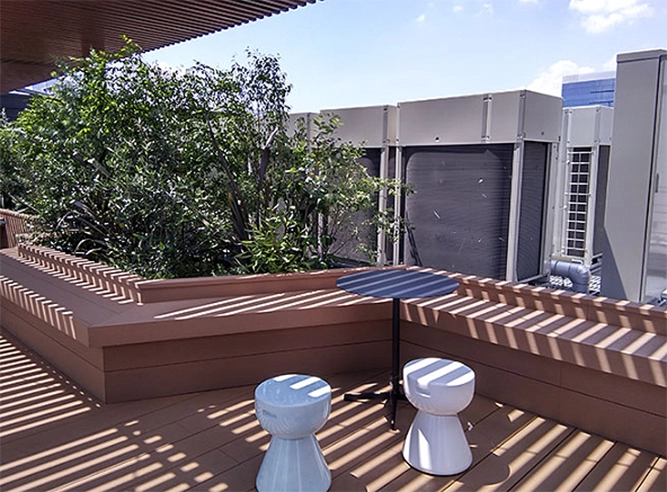 屋上には、ランチなどとったり、休憩できる屋上テラスが設置されました。