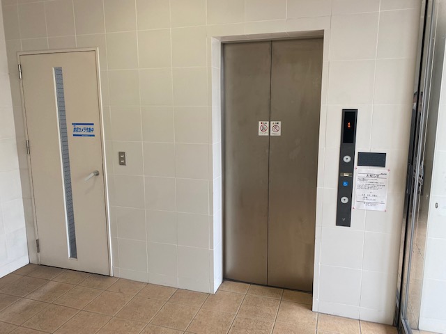 上はタワーマンションなのでオフィス用と事務所用は別々の入口になっており、建物北側はバス停の目の前になっております。