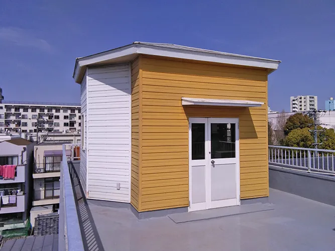 ビル屋上にはペントハウスがあり。倉庫等として貸しだしもしているそうです。