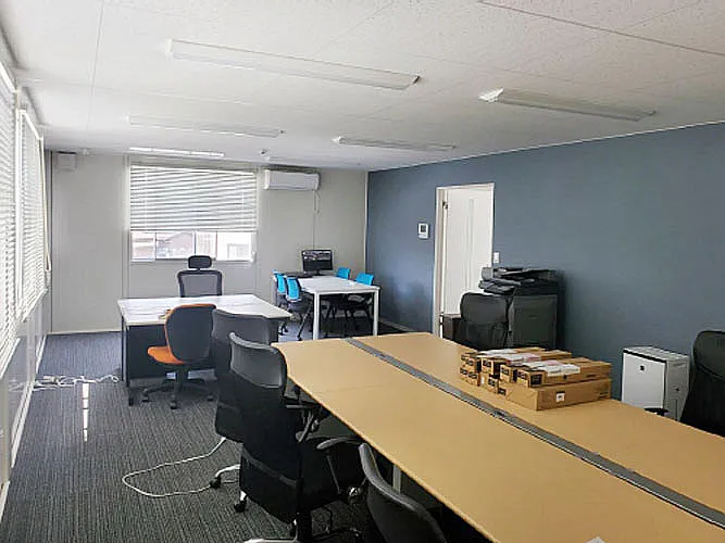 水回り関係でトイレは男女別でございます。また、執務室は1階、2階どちらとも可能になり、1階倉庫利用としても問題ございません。