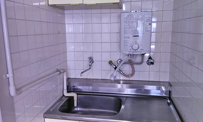 部屋奥から入口側を撮った写真。入口左に水場があります。