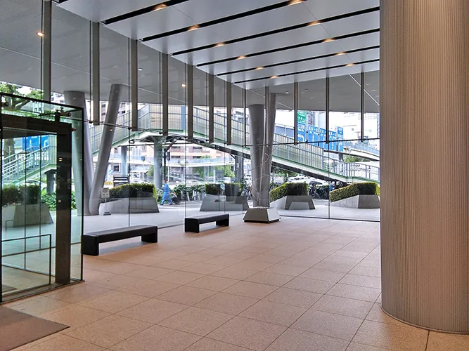 エントランス奥から表側を撮影。ガラス張りでとても明るい。