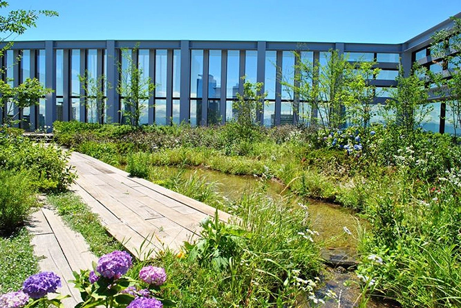 テナント様専用の屋上庭園があり、仕事の合間のリフレッシュにご利用いただけます。